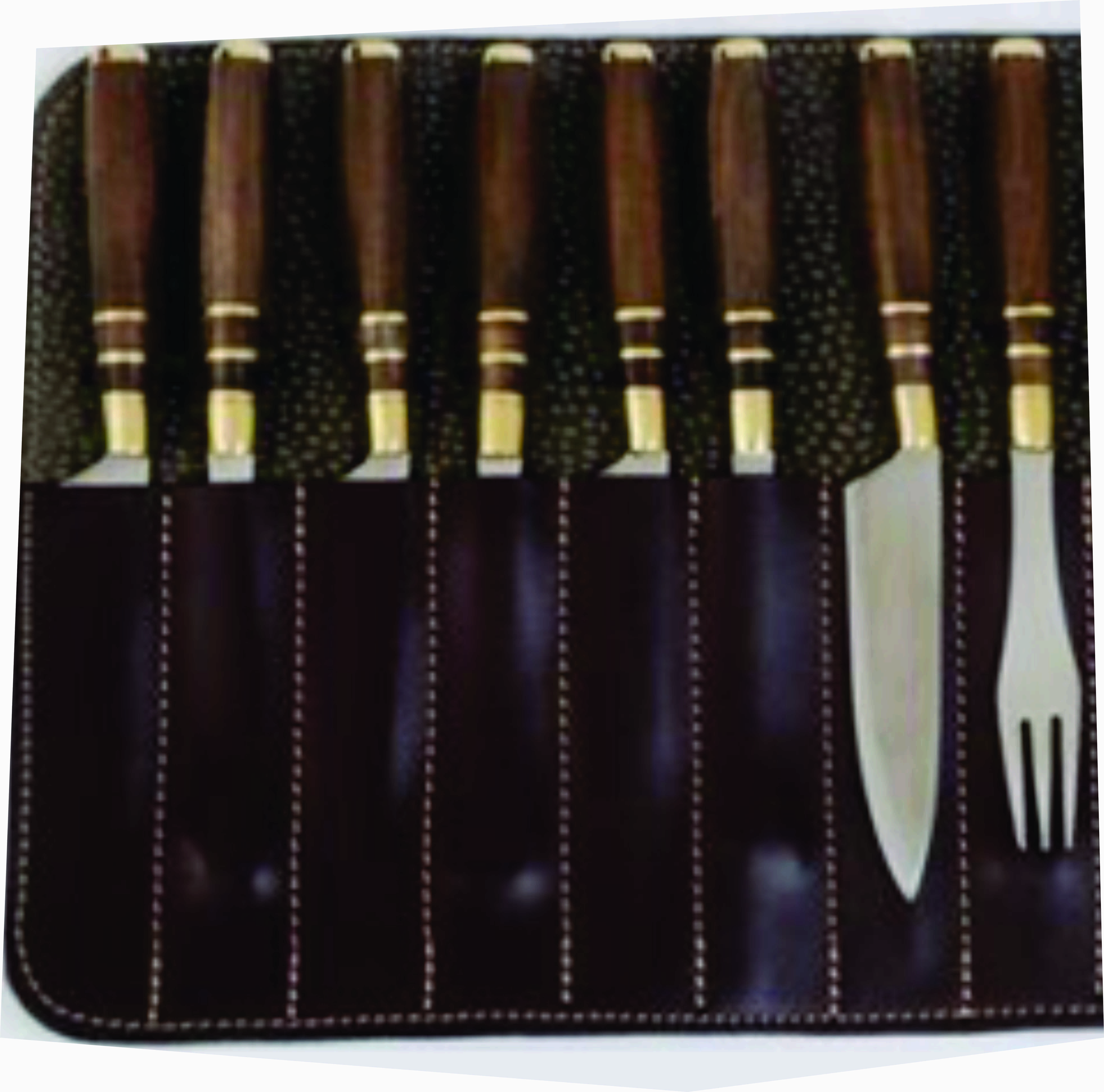 Cuchillos fabricados en Argentina. Acero inoxidable, al agua, 420 molibdeno vanadio español, de una dureza similar al acero 440 o quirúrgico, pero con la ductilidad de ser afilado con chaira o piedra. Encabados en madera Guayubira o Asta de ciervo de volteo. Templado, revenido, pulido y afilado de manera artesanal. Las vainas de cuero diseñadas especialmente para cada modelo con protección de costuras en el filo. Foto a modo ilustrativo. Al ser productos naturales, como la madera, y producidos artesanalmente pueden presentar leves diferencias visuales respecto de la de foto. Como por ejemplo diferente tono o patron del mango.