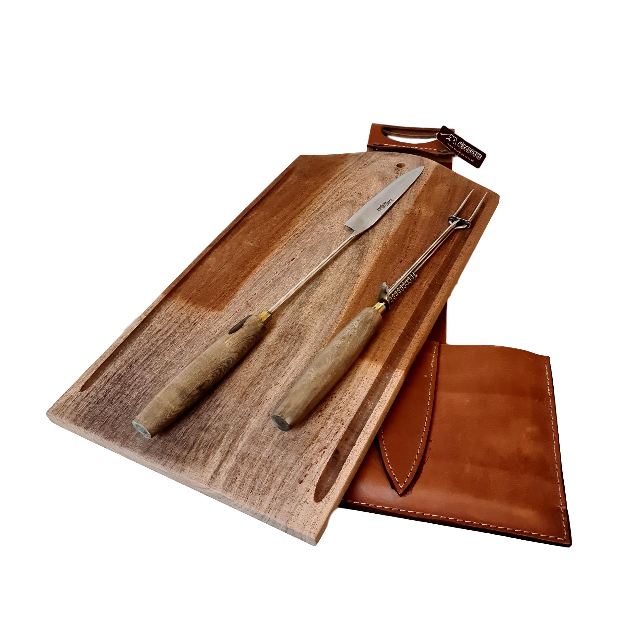 Cuchillos fabricados en Argentina. Acero inoxidable, al agua, 420 molibdeno vanadio español, de una dureza similar al acero 440 o quirúrgico, pero con la ductilidad de ser afilado con chaira o piedra. Encabados en madera Guayubira o Asta de ciervo de volteo. Templado, revenido, pulido y afilado de manera artesanal. Las vainas de cuero diseñadas especialmente para cada modelo con protección de costuras en el filo.