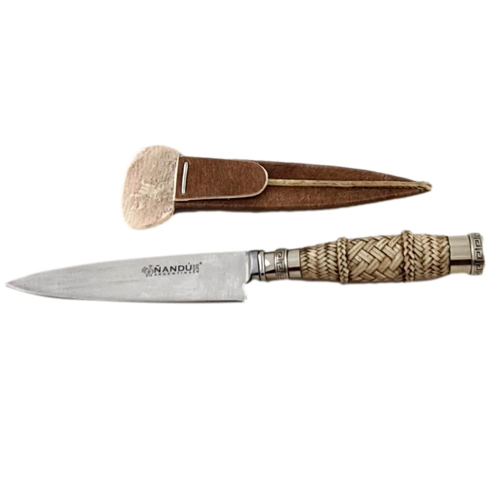 CUCHILLO ÑANDU 14CM TEJIDOS C/BOMBA ALPACA -