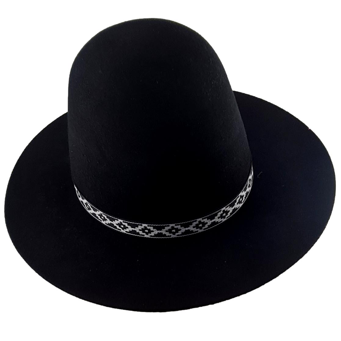 Sombrero TIRAXI de paño de oveja. Paño de Oveja de buena calidad, no tiene el mismo tratamiento del paño que el TRADICION ARGENTINA, no se realiza lustrado, por lo tanto tiene tiempo de elaboración reducido. Sin forro. Sin impresión de marca. Tafilete común de cartón La cinta de 1cm puede variar, siempre con colores al tono. (Imagen ilustrativa)