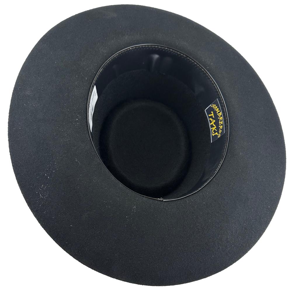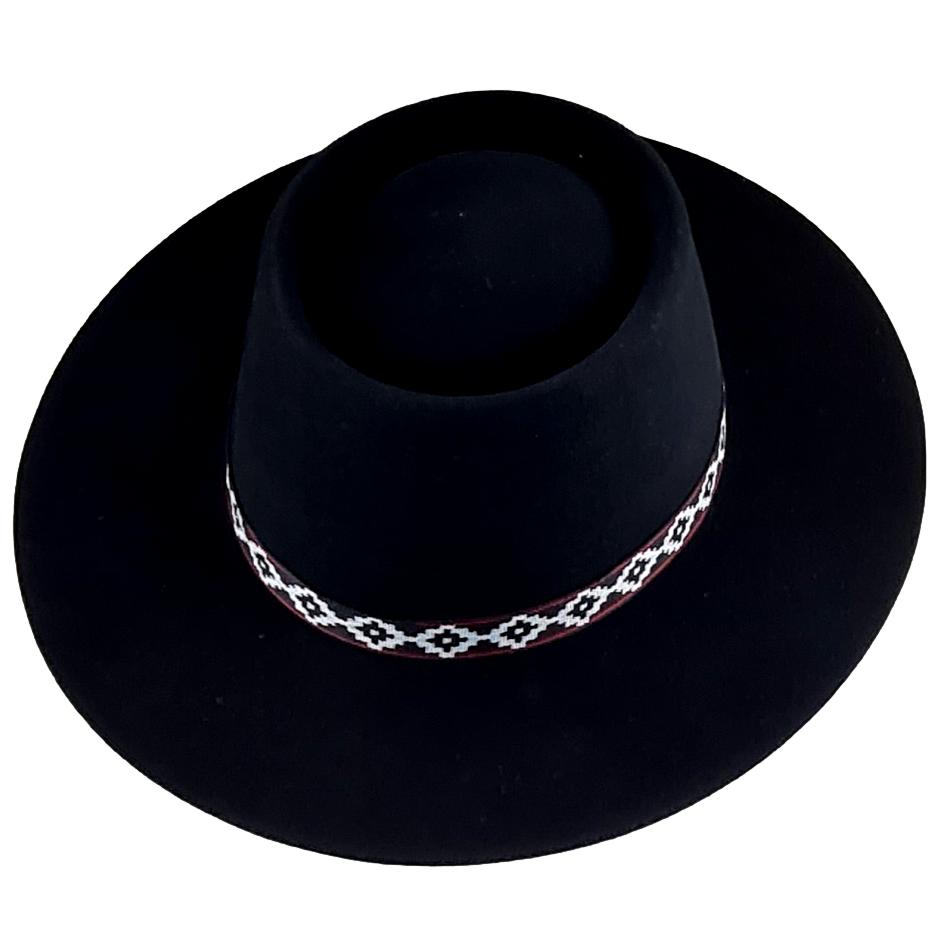 Sombrero TAKI de paño de oveja. Paño de Oveja de buena calidad, no tiene el mismo tratamiento del paño que el TRADICION ARGENTINA, no se realiza lustrado, por lo tanto tiene tiempo de elaboración reducido. Sin forro. Sin impresión de marca. Tafilete común de cartón La cinta de 1cm puede variar, siempre con colores al tono. (Imagen ilustrativa)